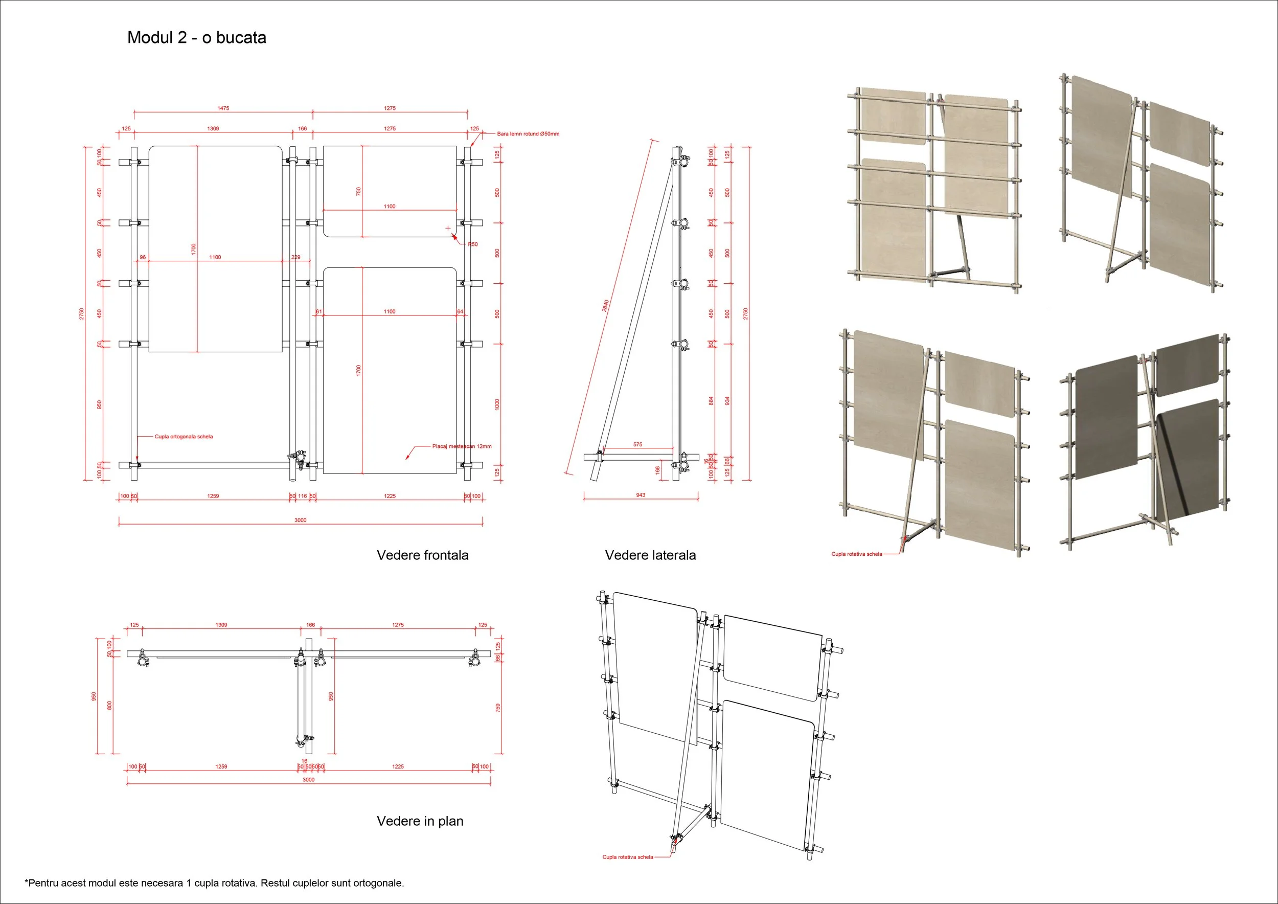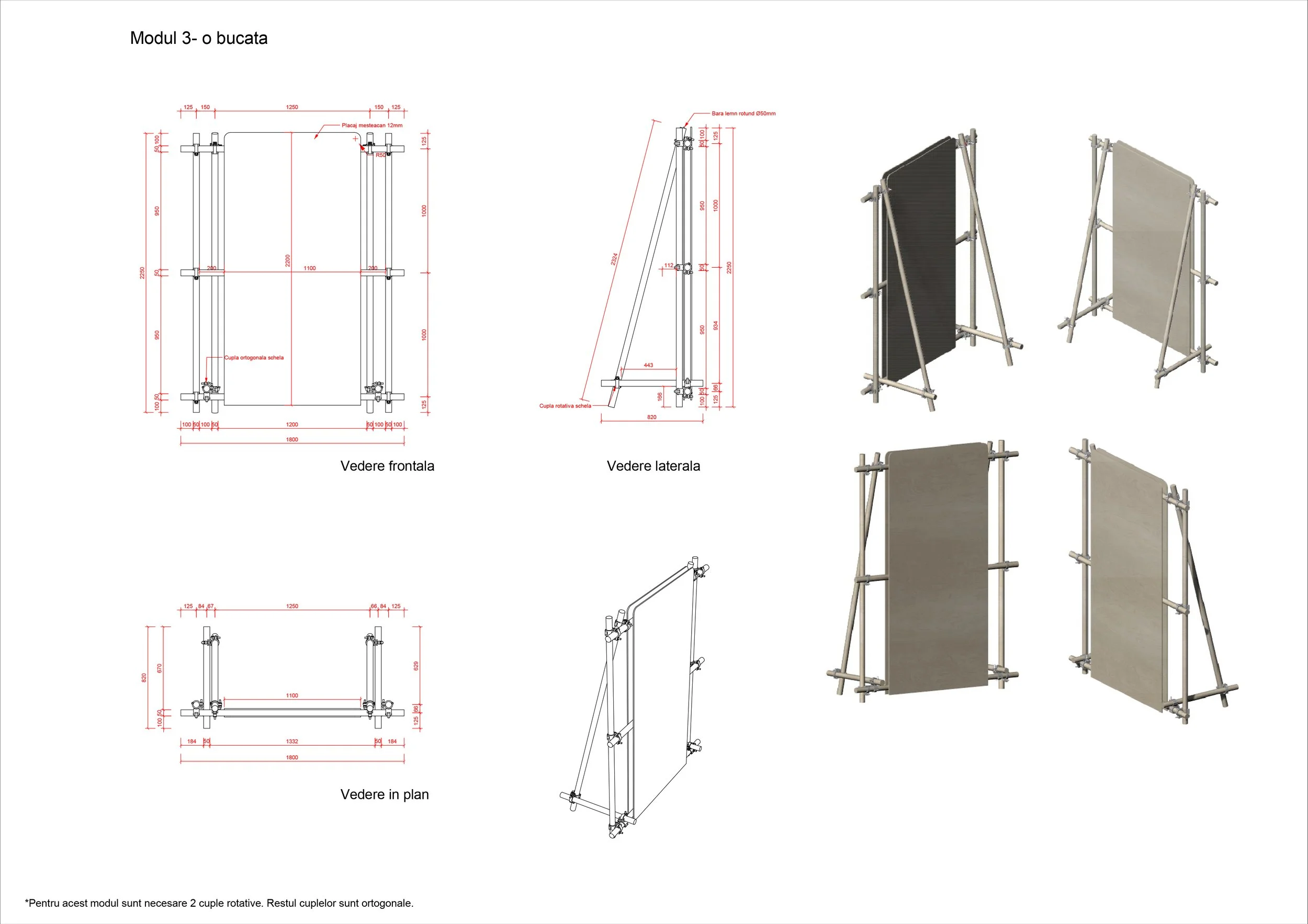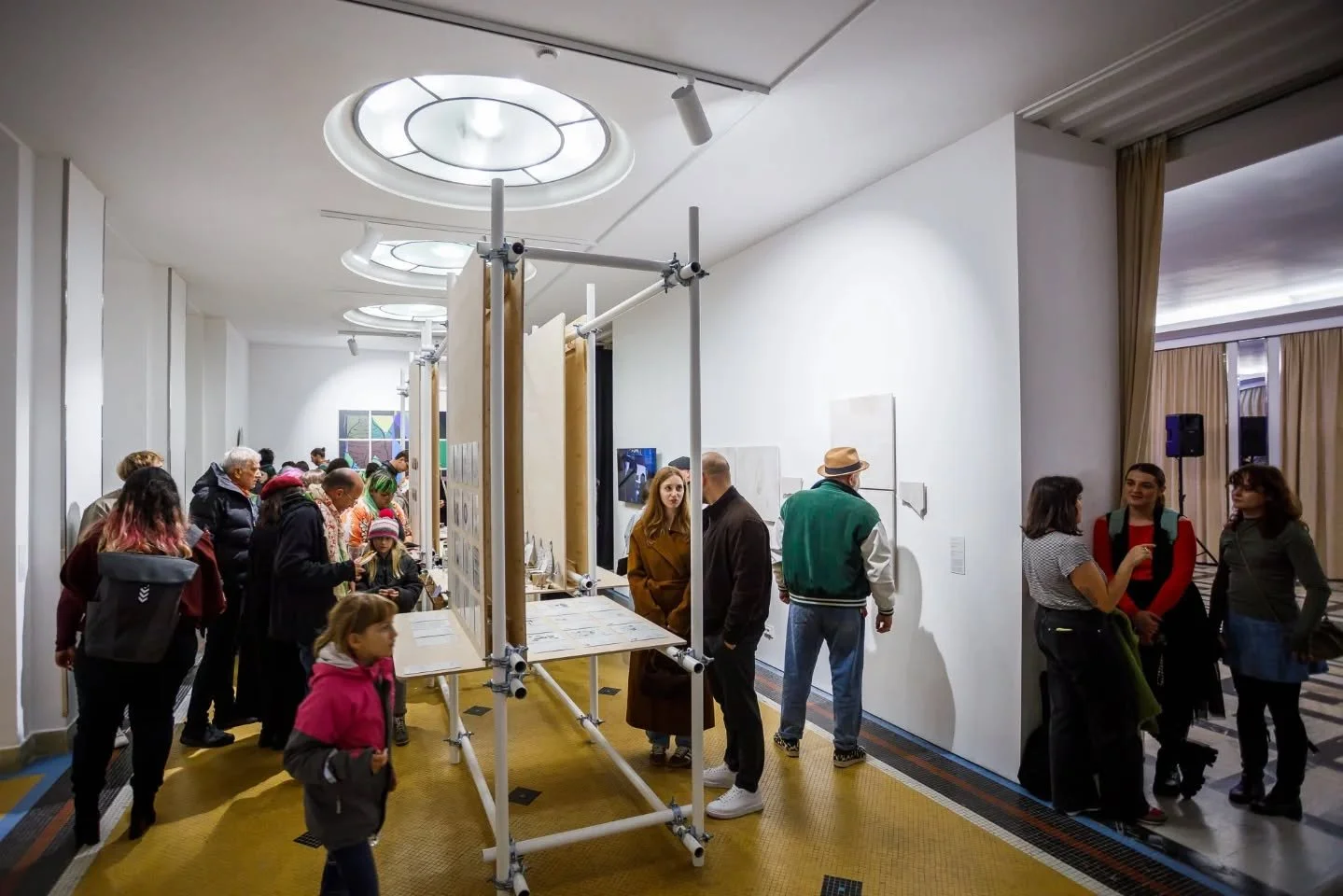 Beyond its functionality, the structure maintains a deliberately experimental aesthetic, evoking the atmosphere of a creative laboratory or a space in continuous transformation. This visual identity, inspired by the idea of “work-in-progress,” reflects the spirit of the exhibition Cluj in Residence, emphasizing exploration, process, and dialogue between artistic forms.