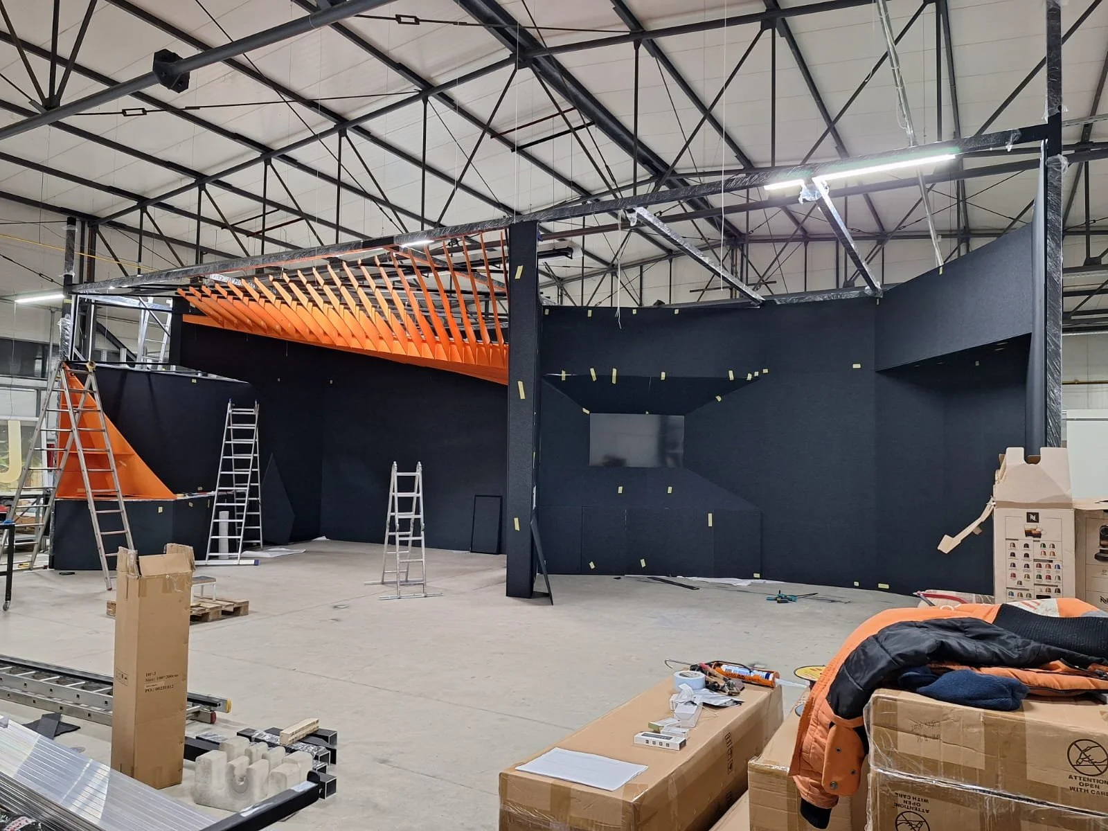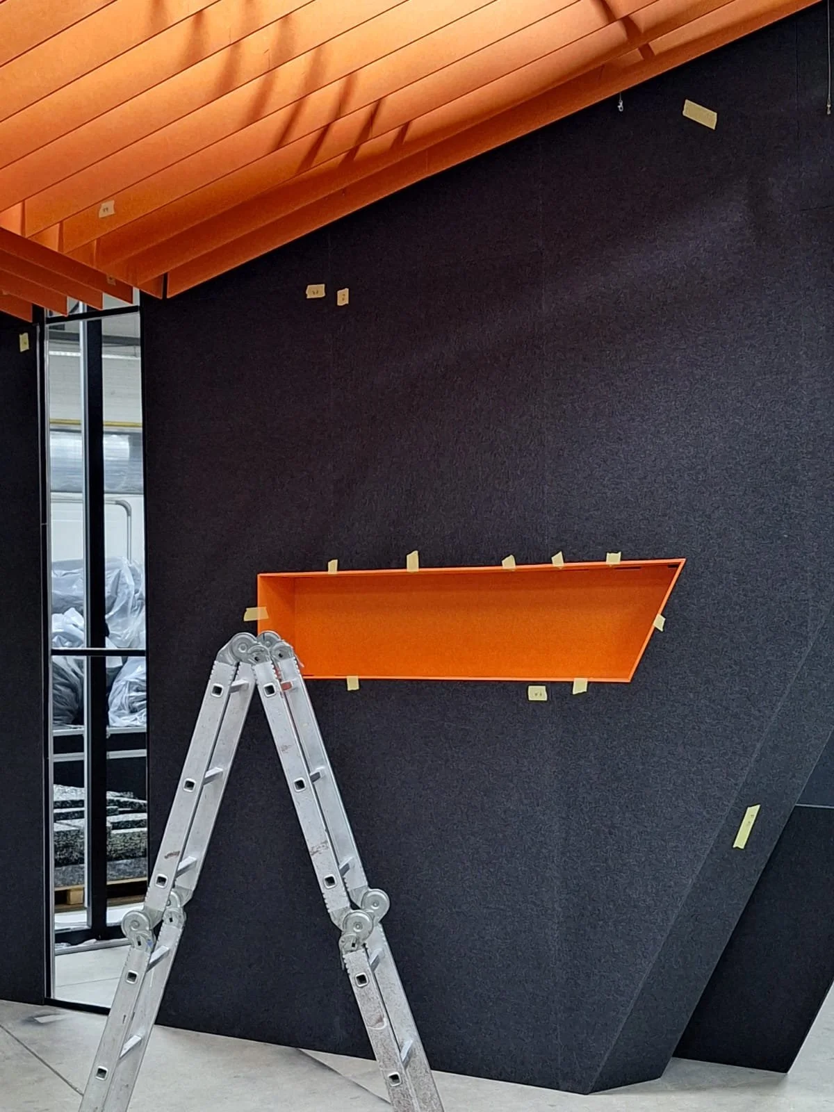 The stand’s materiality conveys comfort both through touch and acoustics. Felt finishes enhance the sound quality of the space, while geometry, rhythm, and color composition create a visually engaging environment.